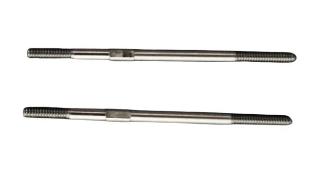 A pair (2) of high quality 45 mm long stainless steel control rods with M2 threads cut at both ends.