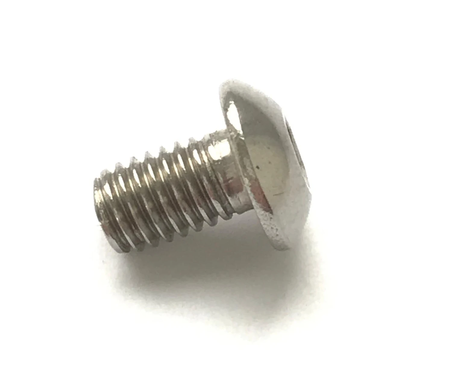 One 8 mm long M5 domed hex end high tensile bright steel screw.